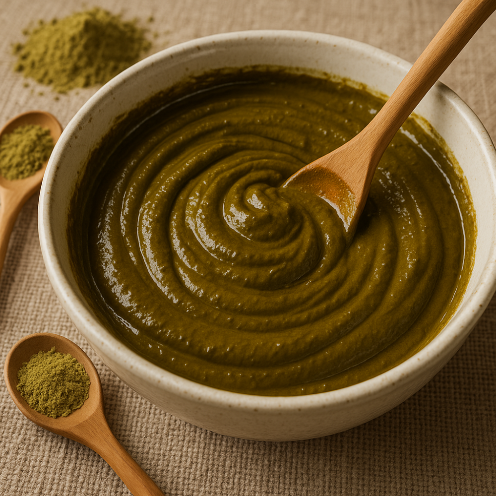 حناء ROOMA بالأعشاب ، مشاط ريما الملكي ، نواة التمر ، قهوة ، أعشاب هندية ، مخلوطة بمغلي أعشاب الباسل.